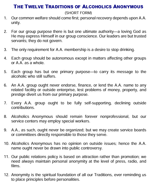 and the 12 traditions provide quidance for the continued existance of AA.